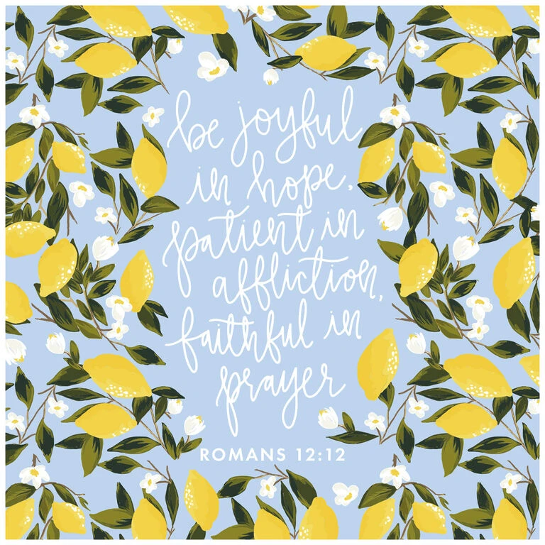 - On puzzle: Be joyful in hope, patient in affliction, faithful in prayer. Romans 12:12